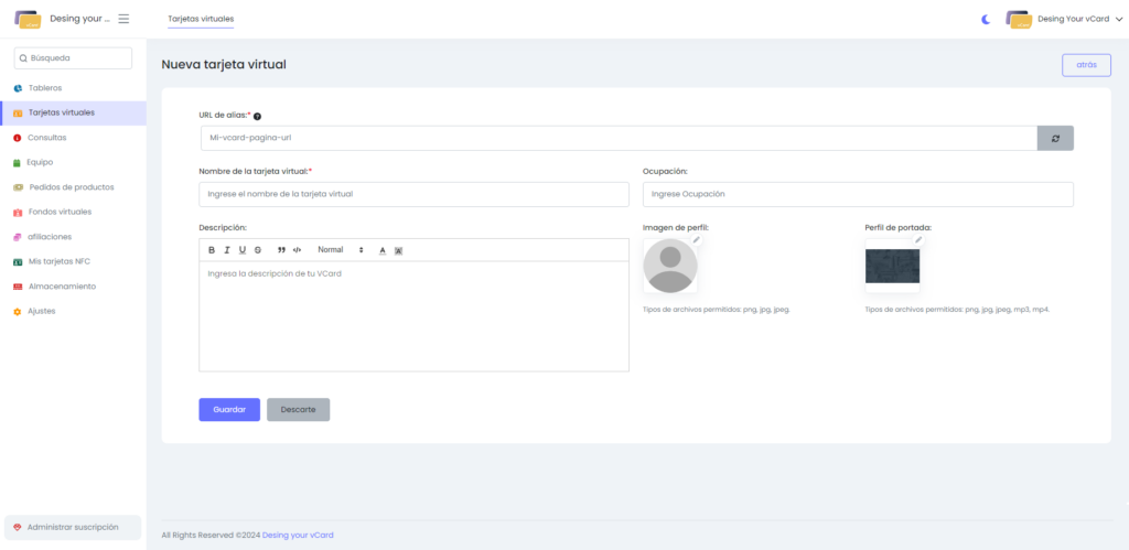Al hacer esto podrás empezar a crear tu tarjeta digital para ello lo primero que te pedirá será que rellenes los siguientes datos