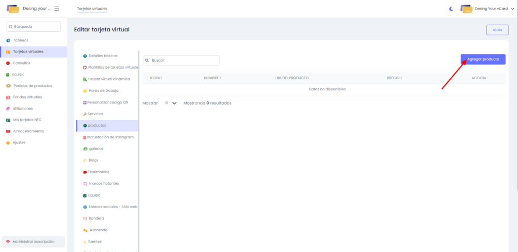 Exactamente igual que el anterior solo que esta vez el cliente pude desde la misma vCard comprar los productos y a ti te llegaran a la sección de pedidos de productos