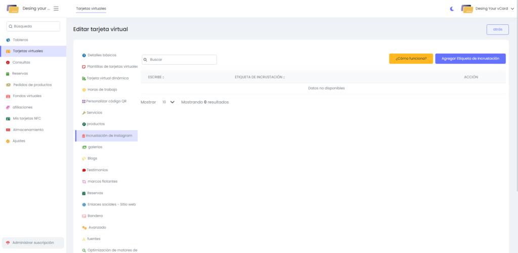 - Agregue la etiqueta Insertar en la sección Insertar de Instagram de vCard