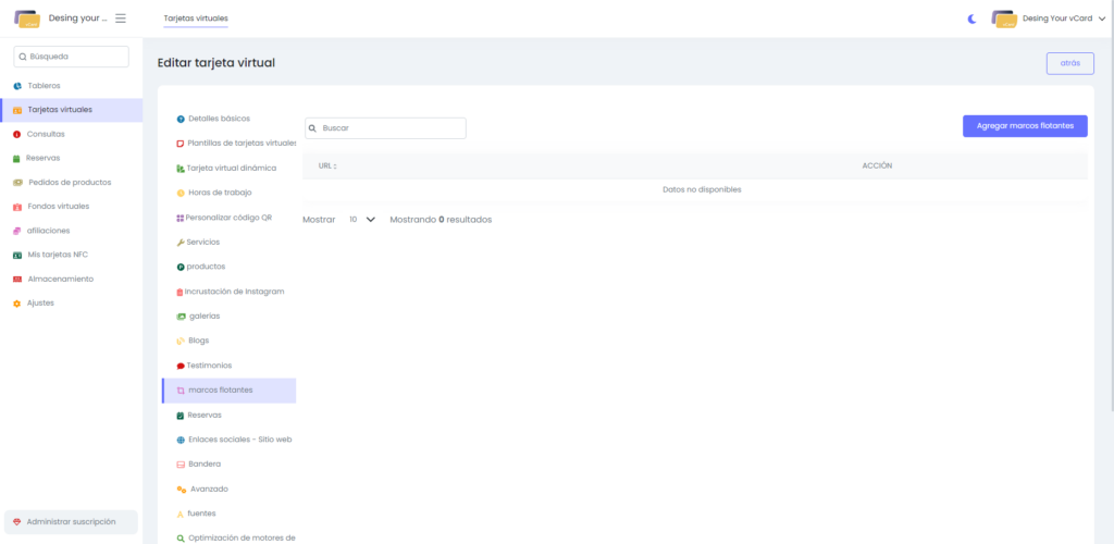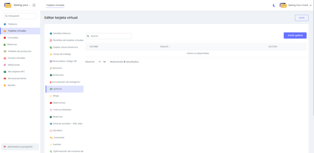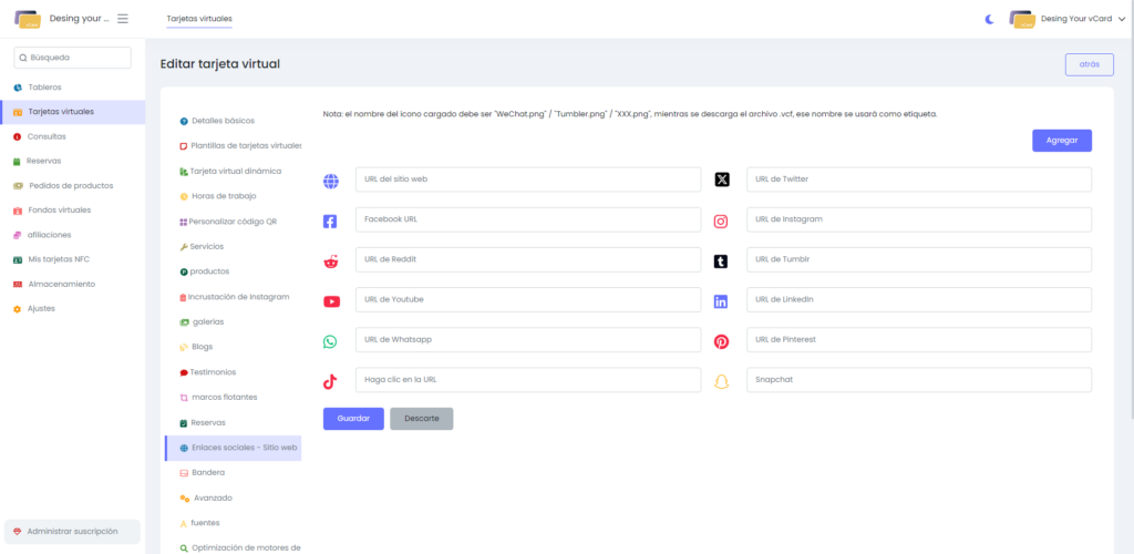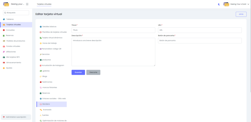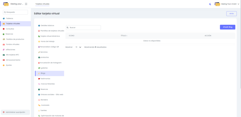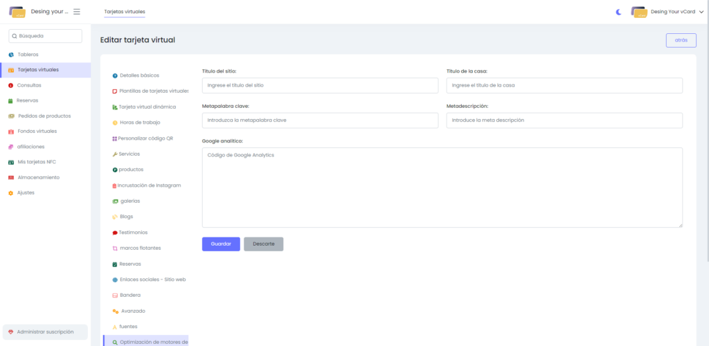Desde esta sección podrás optimizar tu vCard de cara al SEO y así mejorar su posicionamiento en Google